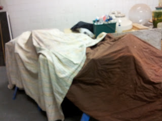 After cleaning up the majority of the paint I put drop cloths over the whole setup to keep the dust off (it will be a while before I get to take more photos and the location is very dusty. + expensive equipment!)